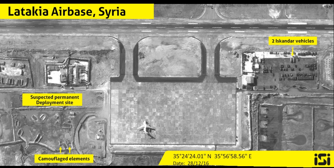 Специалисты представили спутниковые снимки с очень высоким разрешением, которые были сделаны 28 декабря. Это является первым визуальным доказательством присутствия российских ракетных комплексов «Искандер» в Сирии.
