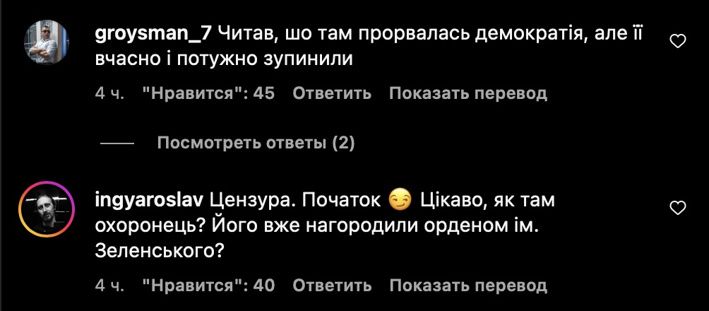 Присутствующие восприняли это как подавление свободы слова и политическое преследование за шутки над Зеленским.