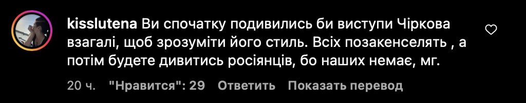 Как сообщили в инстаграме очевидцы, Чирков зачитал со сцены речь Зеленского с президентских дебатов на выборах 2019 года, в которой тот ругал Петра Порошенко из-за отсутствия равенства всех перед законом, из-за отсутствия наказаний для коррупционеров и отказа снять неприкосновенность с депутатов.