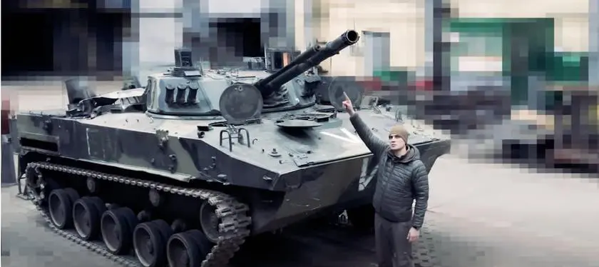 В своем сюжете мужчина продемонстрировал один из расстрелянных оккупантами автомобилей в Буче. Люди в нем были расстреляны из 30-мм пушки, устанавливаемой на БМД-4М (боевой машине десанта), поступившие на вооружение российской армии с 2016 года (то есть уже после введения санкций, запрещающих поставки в Россию оборудования двойного назначения). Одну из таких БМД оккупанты бросили в Буче.