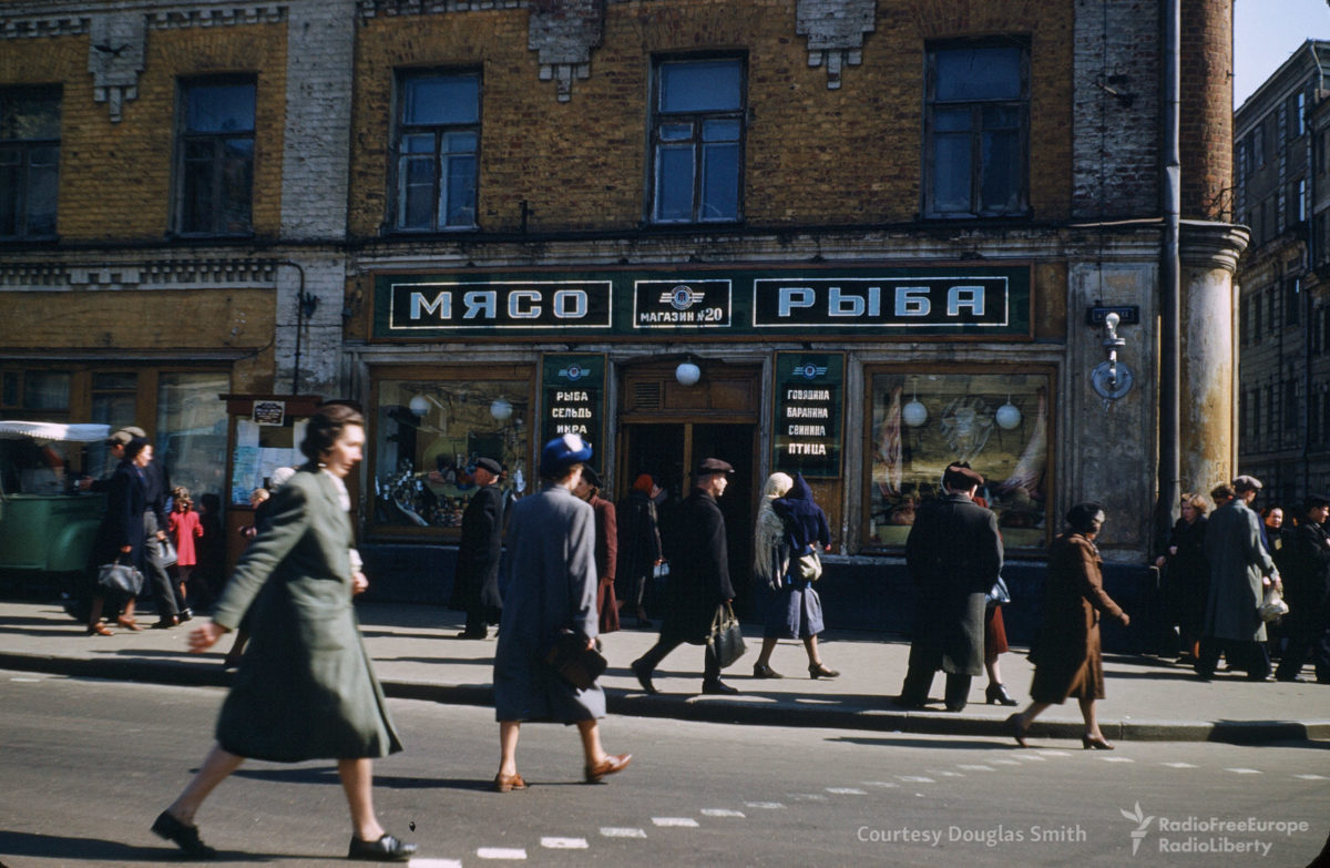 Как видите, даже столица «велкой советской империи Сталина» выглядела достаточно невзрачно, а её население жило достаточно бедно — что видно как по одежде горожан, так и по внешнему виду улиц в целом. И возникает вопрос — а кому был вообще нужен этот совок? Кого он сделал лучше, богаче, добрее? От сталинской империи в итоге остался только страх и нищета — вот и всё её наследие…