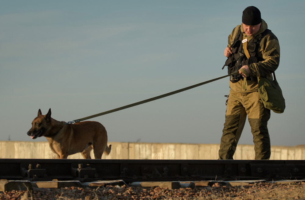 Дядя в «горке» и с собакой внимательно осматривает гайки — не открутили ли хотя бы одну американские шпионы, которые под видом космонавтов прибыли на космодром?
