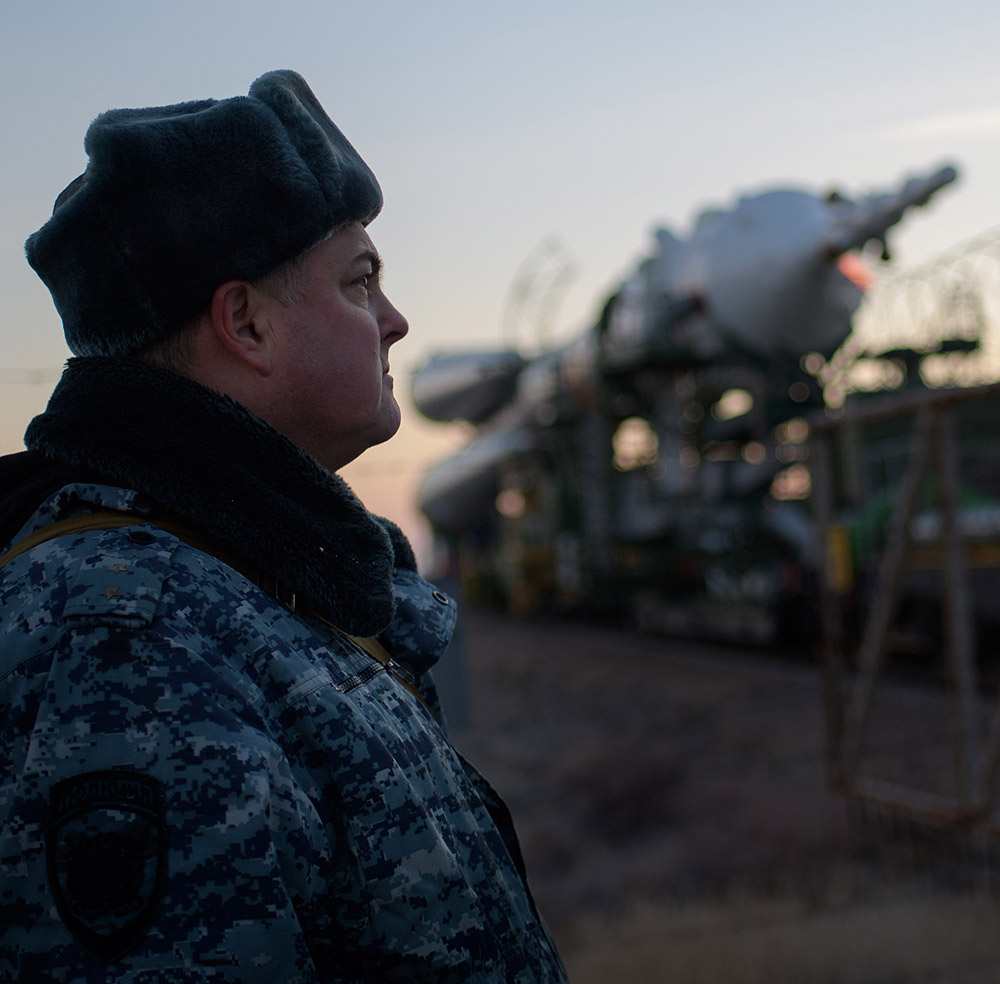 Космонавт перед стартом вспоминает, заправлены ли в планшеты все космические карты. А нет, стоп, это же охранник.