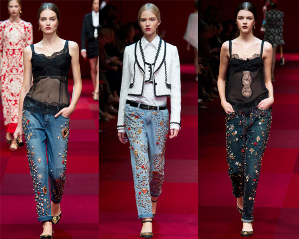 В конце 60-х известный кутюрье Луи Ферро выпутил коллекцию джинсов, украшенных стразами. Это было смело и оригинально. Модели быстро разлетелись, что привело к новому этапу в мире моды, и в частности — в мире джинсовой одежды.
