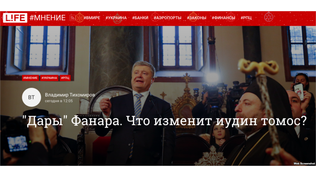 После того как 6 января Вселенский патриарх Варфоломей в Стамбуле торжественно вручил томос об автокефалии главе Православной церкви Украины митрополиту Епифанию российские средства массовой информации начали умышленно использовать дезинформацию и манипуляцию в своих публикациях. Об этом сообщает «Радио Свобода».