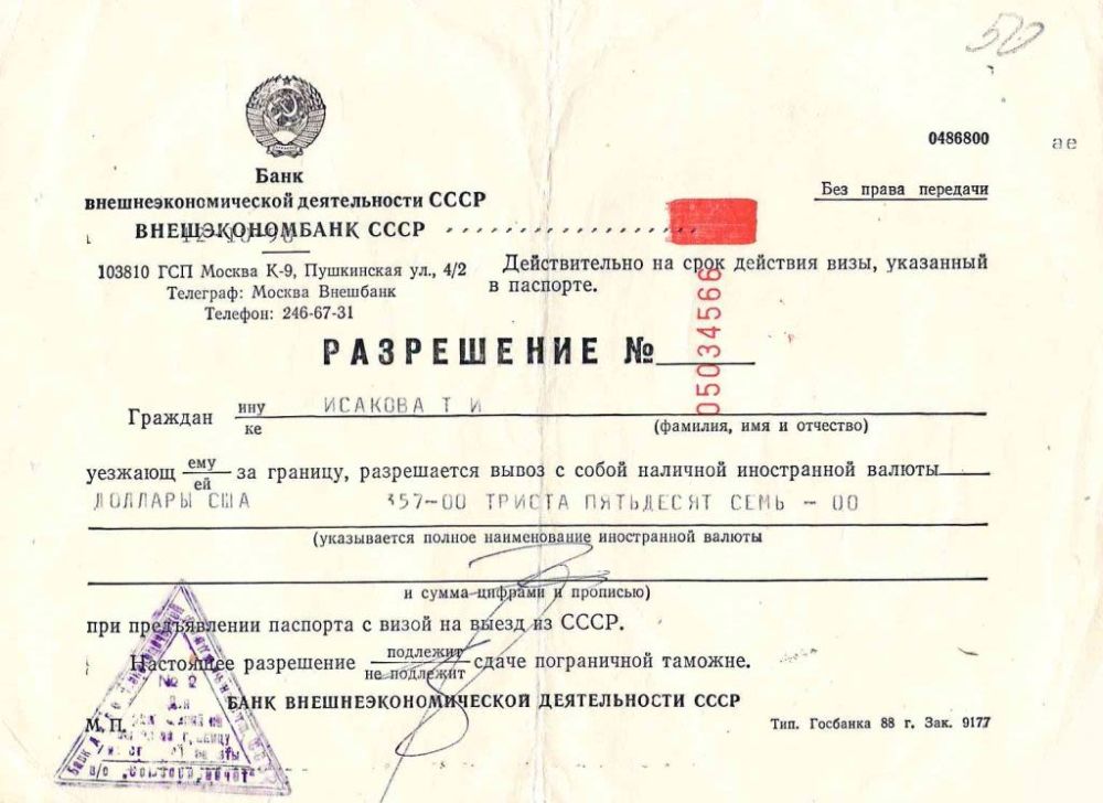 И самое главное — поездку вам могли не разрешить в принципе, если хоть на каком-то этапе в вас заподозрят невозвращенца — то есть, того, кто собирается уехать и не вернуться. В США у пограничников есть такая формулировка — «вы обманули правительство США об истинных целях вашего визита, вы наверное собираетесь тут остаться, мы не можем разрешить вам въезд». Так вот, в совке было то же самое, но с точностью до наоборот — правительство не разрешало выезд из страны собственным гражданам.