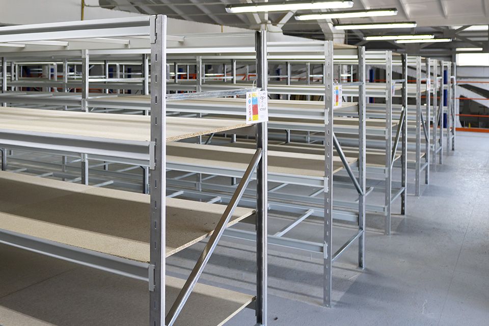 Ранее сказали, что собирать металлические стеллажи намного проще, чем деревянные. Это обусловлено особенностями их безболтовой конструкции. То есть, полки крепятся на стойках с помощью специальных зацепов, а не винтов с гайками — это существенно экономит время без снижения прочности конструкции. Перфорация на стойках позволяет переставлять полки с шагом 100 мм и подбирать оптимальную конфигурацию под габариты грузов и коробок. Собрать металлоконструкцию можно самостоятельно, для этого не нужны специальные навыки или инструмент.