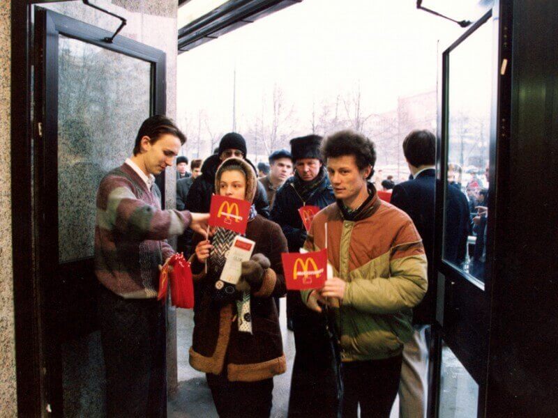 Примерно в то же время, 31 января 1990 года в Москве открылся первый бездуховный «Макдональдс» — на открытие которого компания испрашивала милостивого разрешения Компартии СССР — и в это злачное место родом прямо из заокеанской пиндосии моментально выстроилась гигантская очередь из советских граждан.