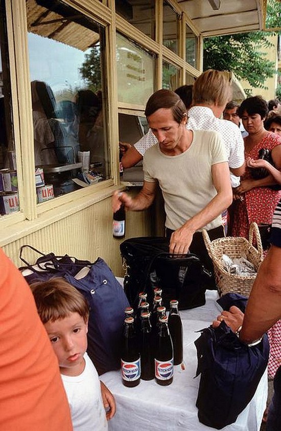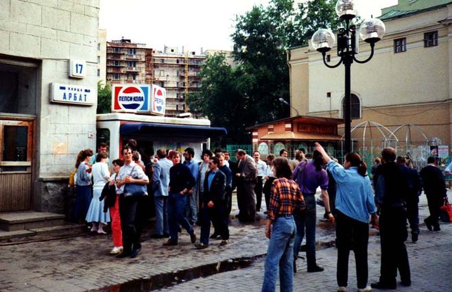 «Пепси-кола» появилась в СССР в восьмидесятые годы и тут же стала молниеносно популярной — не в последнюю очередь в этом сыграл тот самый флёр «красивой западной жизни» — пьют «Пепси», слушают джаз, катаются кабриолетах. И это кстати отлично показывает, насколько плохо работала топорная совковая пропаганда. Казалось бы, советский человек должен был жить по принципу «от подарков их сурово отвернись — мол у самих добра такого завались» (с), но вместо этого он тут же выстраивался в огромные очереди за всем «западным» и «оттуда»: