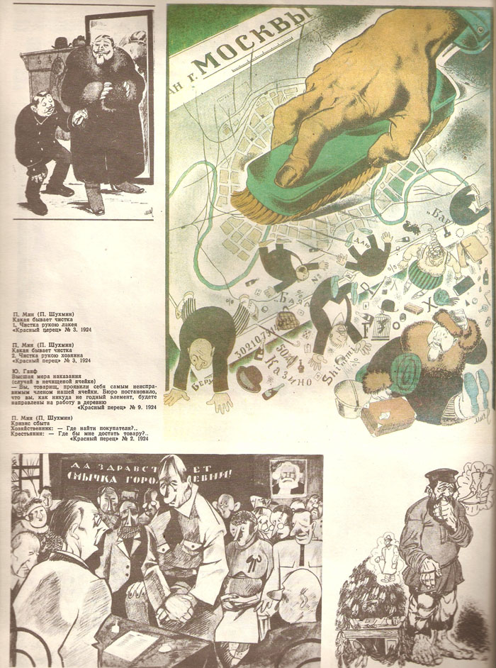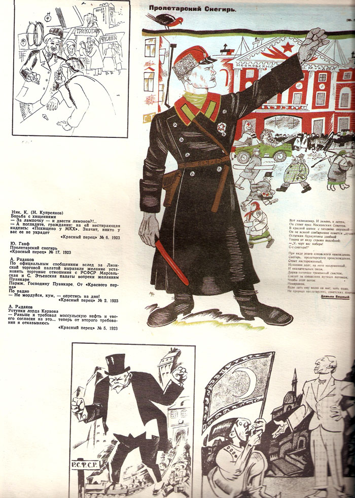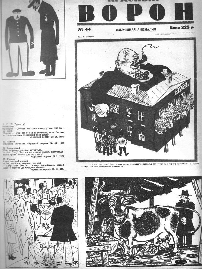 А вот эта картинка очень интересная. Как бы «ирония второго порядка», высмеивающая сам советский строй, показывая разницу между «газетными сводками об успехах» и реальным положением вещей. Чем-то напоминает книги Андрея Платонова. В 1920-е годы так шутить ещё можно было, при Сталине подобный юмор изжили как класс.