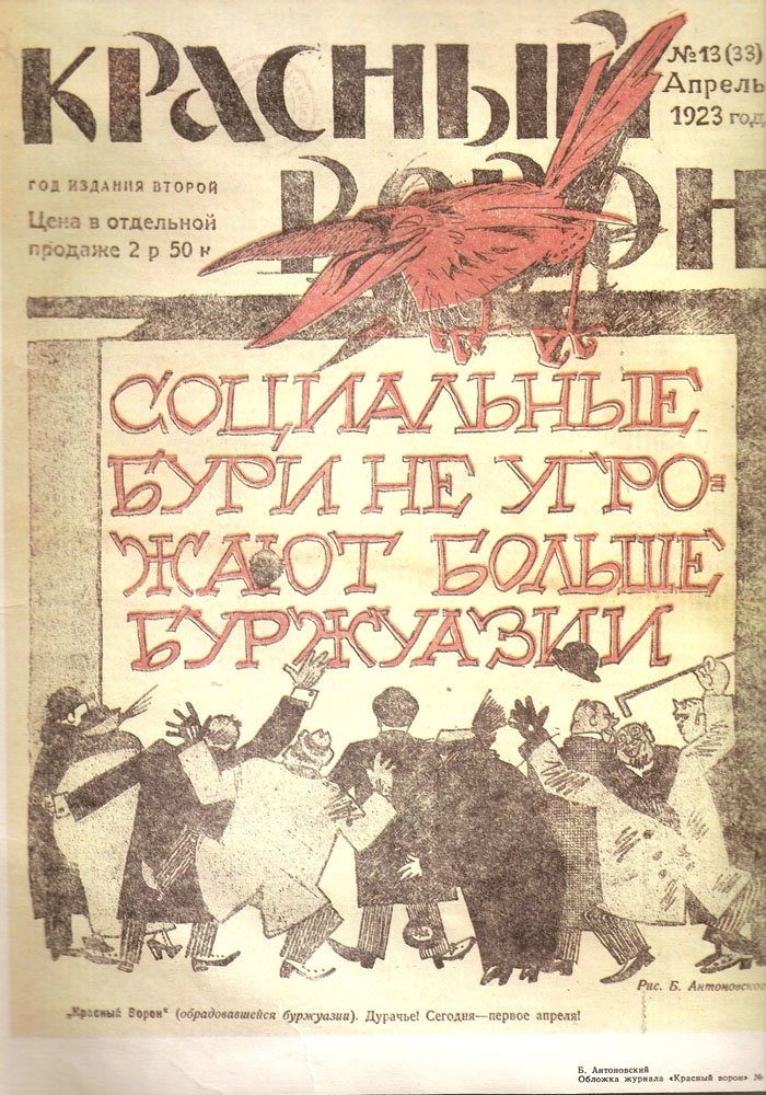 А здесь показана «весёлая шутка» — «Социальные бури больше не угрожают буржуазии». Что, возрадовались? Так сегодня ж первое апреля! На самом деле угрожают. Буржуазия должна быть ликвидирована как класс — говорили совки, стараясь как можно скорее окончательно решить вопрос.