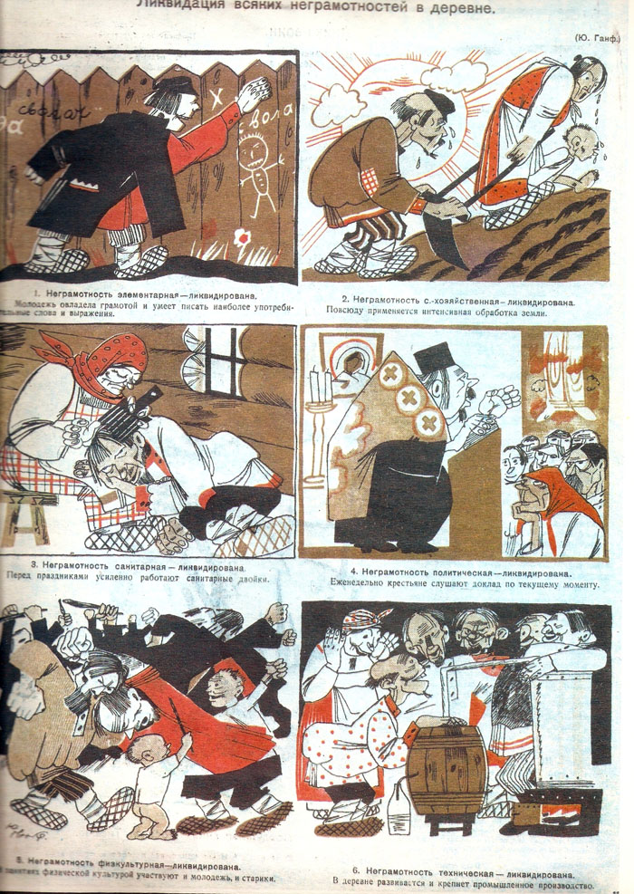 Если в журналах изображают крестьян, то всячески подчеркивают их несчастность в дореволюционные годы — например, отсутствие земли. При этом в журналах почему-то не говорилось, что после 1917 года у крестьян вообще отобрали последнее, никакой земли они не получили а наоборот — у крестьян отобрали паспорта и загнали их в колхозы работать за трудодни. Фактически, вернули крепостное право, отменённое в 1861 году.