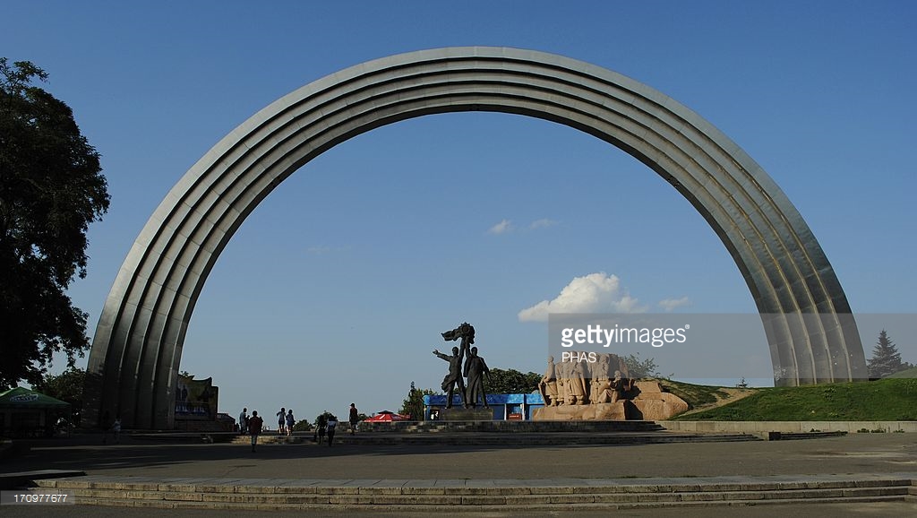 02. Начнём с архитектурных построек) 1982 год, на правом берегу Днепра была открыта Арка дружбы народов. Арку строили 4 года и открыли к дате 60-летия образования СССР. Под аркой находится скульптура из двух трудящихся — украинца и русского, а также надпись — «в ознаменовании воссоединения Украины с Россией» — эту тему, как сейчас модно говорить, «сильно пиарили» в СССР.