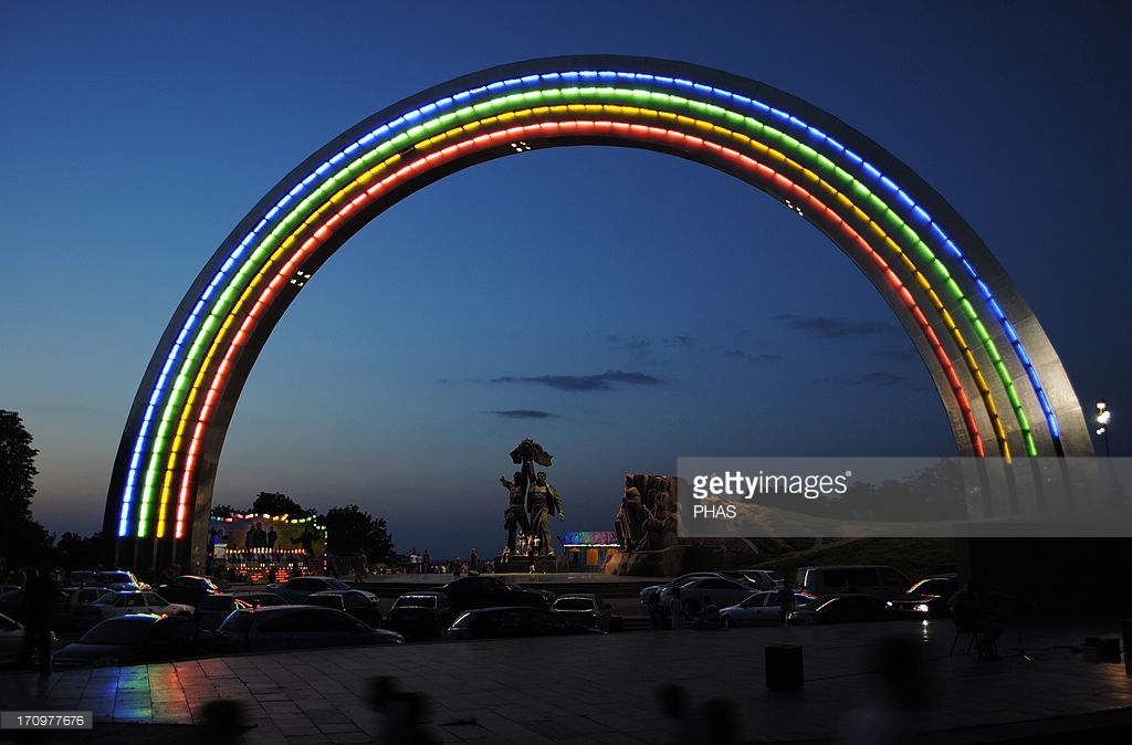 03. По вечерам на Арке зажигалась подсветка цветов радуги, что вкупе с двумя мужиками, что держатся за руки, порождало не те ассоциации, что задумывались авторами памятника и стало поводом для шуток)