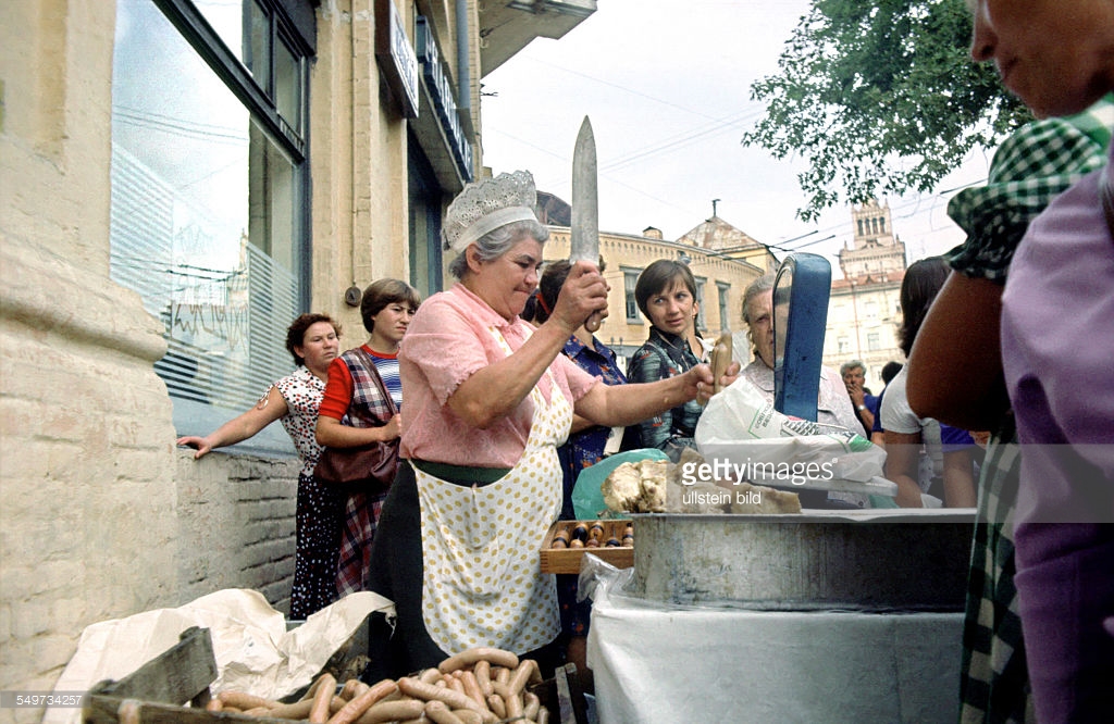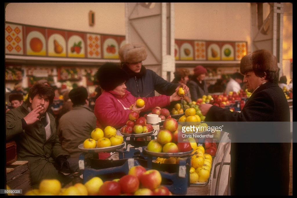 16. Январь 1989-го, один из киевских рынков. На первый взгляд — изобилие, но если присмотреться — на весах одни яблоки 2-3 сортов. В те времена яблоки были часто единственным, что можно было купить из фруктов, ещё з них варили компоты, делали джемы и т.д.