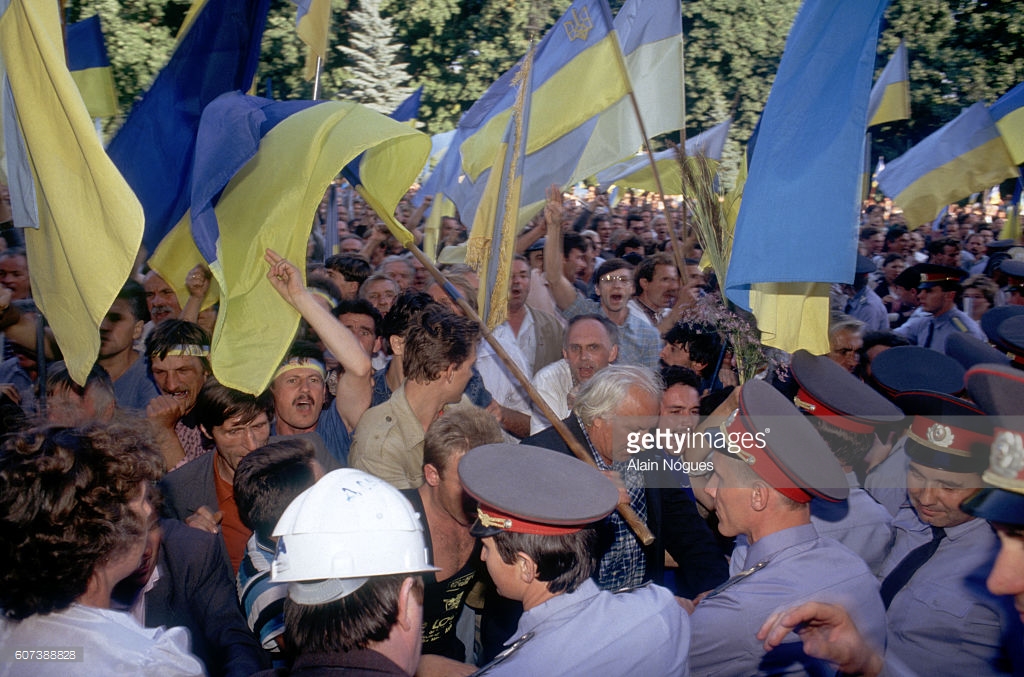 24. Начало осени 1991 года, в Украине идут протесты в защиту национального сине-желтого флага и за то, чтобы он заменил советский.