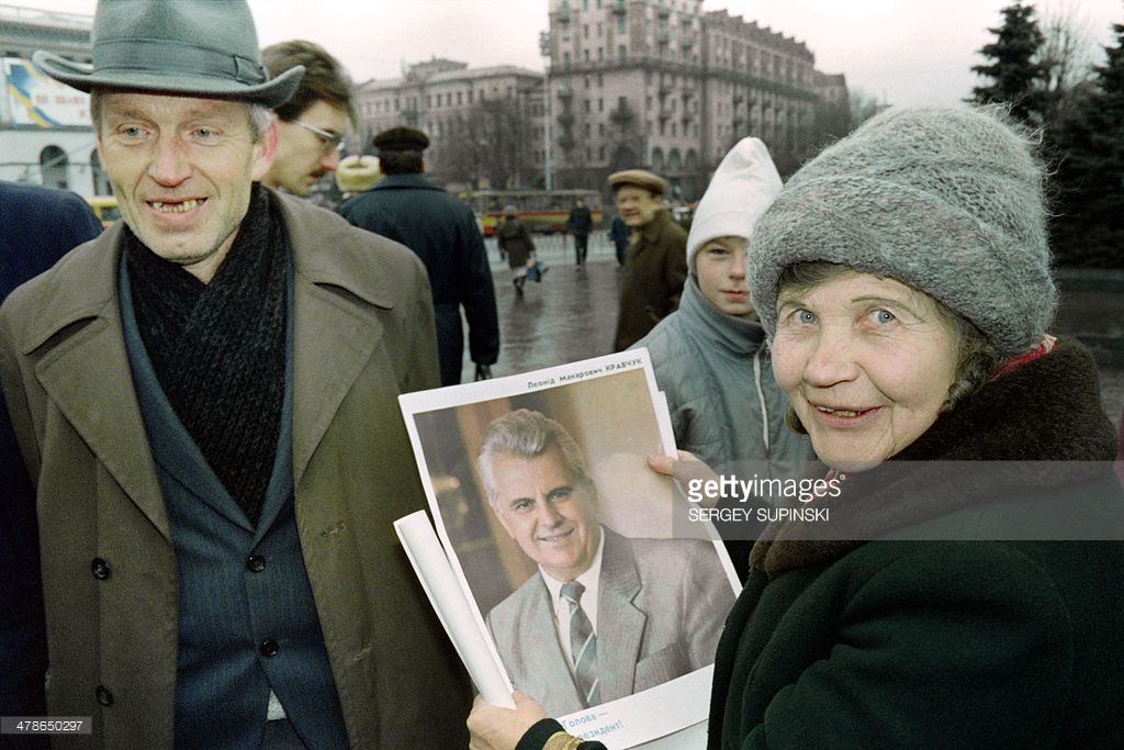 26. Ноябрь 1991 года, Украина готовится к выборам первого президента, на фото — агитирующие за Кравчука на Майдане.