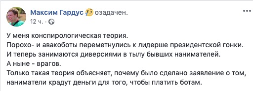 Он рассказал, что накануне несколько «людей, ударившихся пару лет назад в рафинированное зрадойобство… выразили дикое смущение и тревогу по поводу вероятной победы Тимошенко на выборах и перспектив Украины в этом случае».