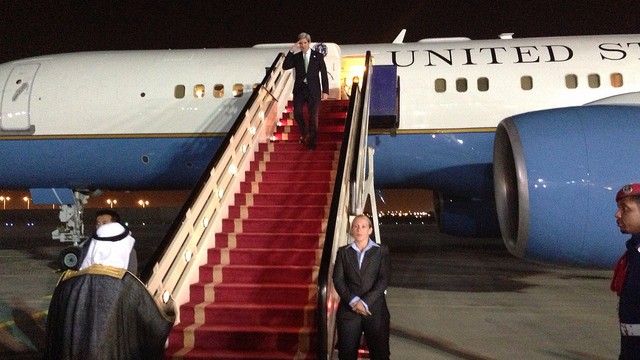 Услышав заявление Сергея Лаврова, который уверяет, что Россия остановится на аннексии Крыма и не будет вводить войска в Украину, Джон Керри, после дозаправки в Ирландии на пути из Саудовской Аравии в США, взял курс на Париж. По словам американских дипломатов, был начат процесс организации внеплановой встречи Керри с Лавровым.