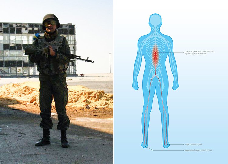 «Роман С., 35 лет, боец 93 ОМБр, травмирован возле Донецкого аэропорта. Последствия закрытой позвоночно-спинномозговой травмы, выраженный парез левой ступни, парез правой ступни», — говорится в сообщении.