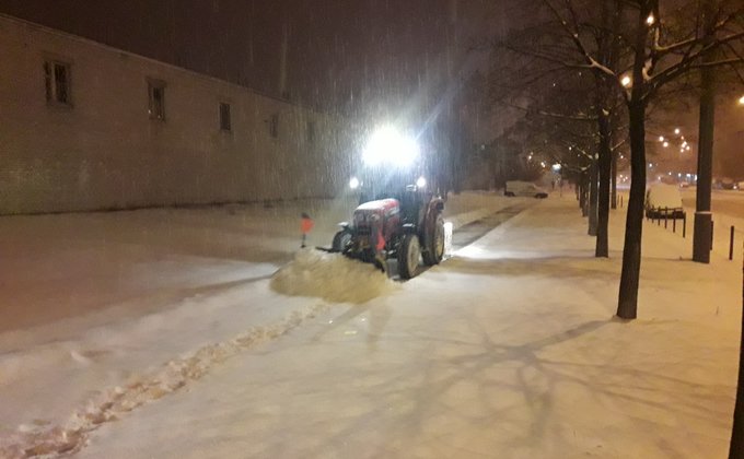 В КГГА информируют, что вечером на улицы города выехали 358 единиц снегоуборочной техники. Расчищается снег, сбивается лед, рассыпается соль.