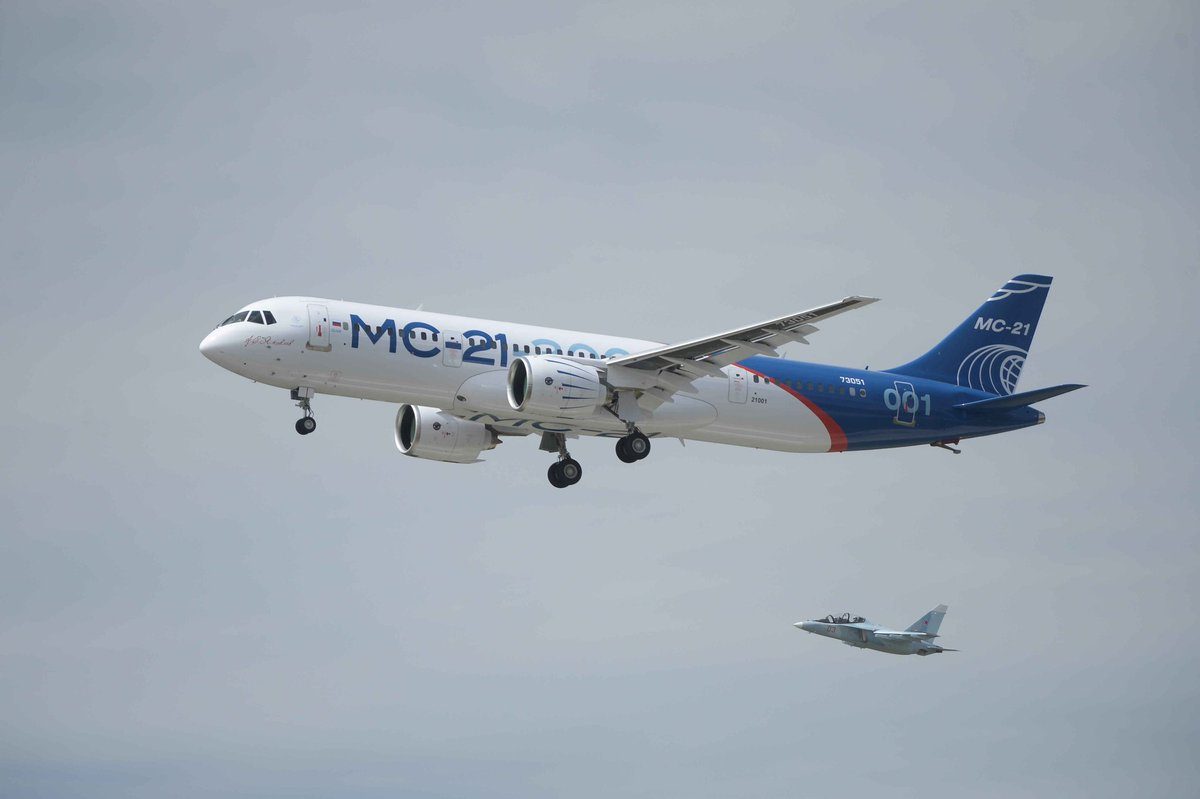 МС-21 — пассажирский лайнер вместимостью от 150 до 211 пассажиров. Ожидается, что он сменит советские самолеты «Ту», «Як» и «Ан».