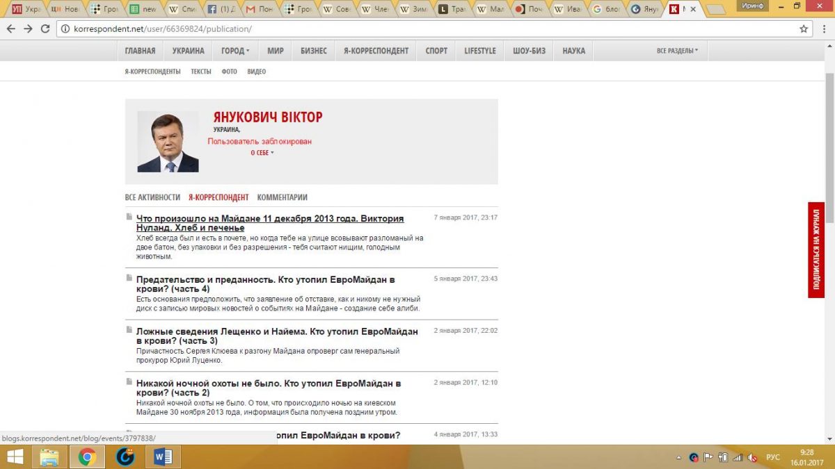 «Корреспондент» удалил «блог Януковича»