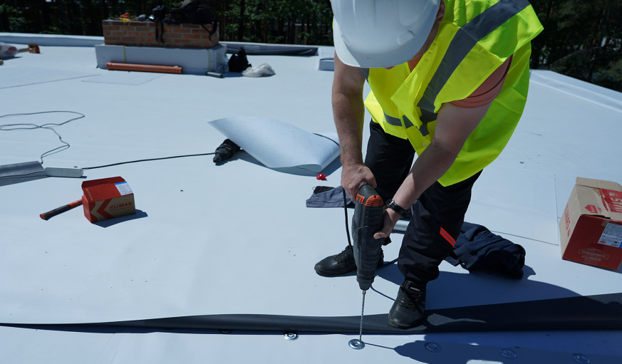 • Сварка. ПВХ и ТПО мембраны могут быть сварены вместе с помощью горячего воздуха или ультразвука. Сварка обеспечивает создание прочных и герметичных соединений между отдельными листами мембраны. Этот метод эффективен и надежен, позволяя образовывать бесшовную кровлю без риска протекания.