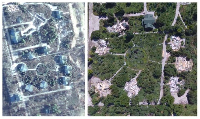 ««Лего» для оккупанта. Это комплекс «Дончанка» возле оккупированного Новоазовска. Слева — несколько месяцев назад. Справа — прямо сейчас. Вместо домов — только контуры фундаментов. И это не злобные укры их разбили снарядами, а тщательно демонтировали российские освободители. Собственноручно», — сообщает Цаплиенко.