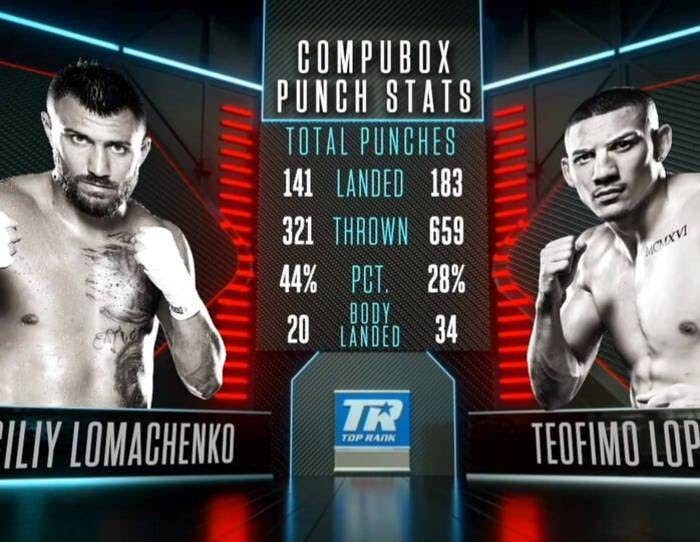 Сам Лома считает решение неверным, но статистика говорят об обратном. За бой суммарно Лопес смог нанести 659 ударов, а мировой чемпион — всего 321. Невооруженным взглядом было видно, что американец ведет себя более активно. Конечно, Хай-Тек был более точным. Процент попадания 44% против 28%, но это ему не помогло.