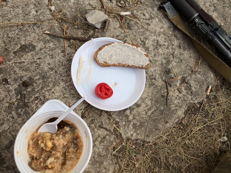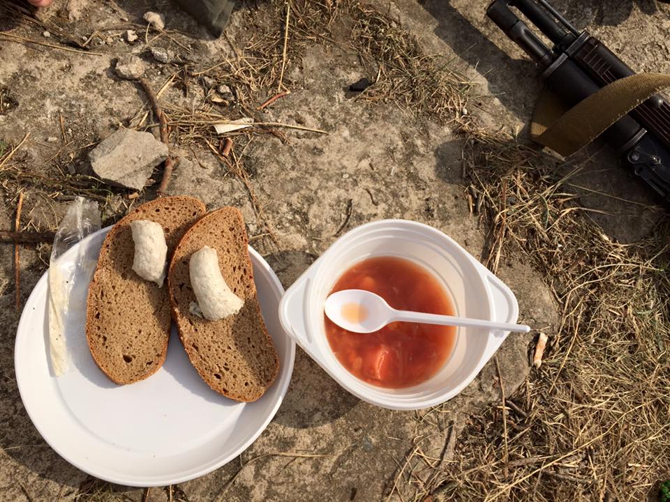 Коли приїхали, то на полігон йдемо лісом. Щось типу патруля. Спрчатку шукали засідку. А потім самі влаштовували. Пили каву натуральну. Розвели вогонь. Заварили каву. Мені налили в моє горнятко. Я з’їв мураху і запив кавою. Смачно, до речі. Кисленька хрумка мураха і солодка міцна кава.