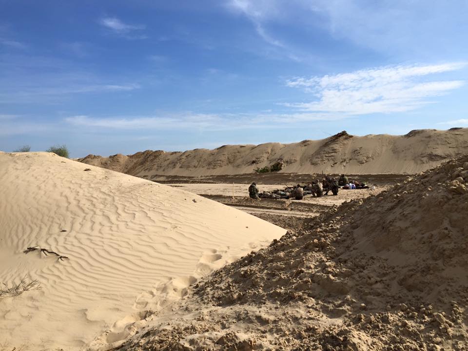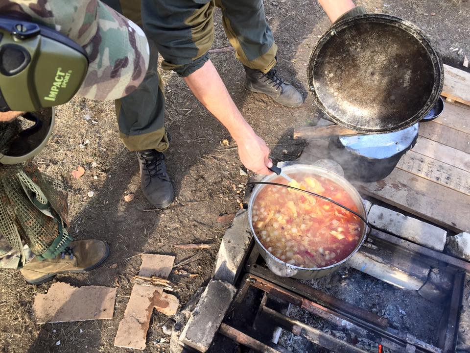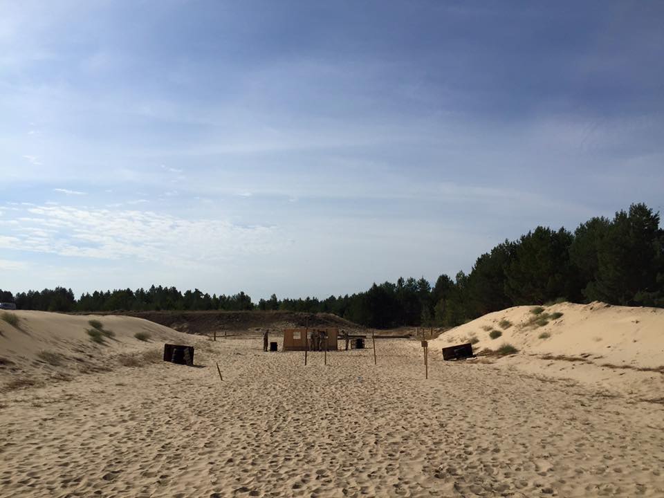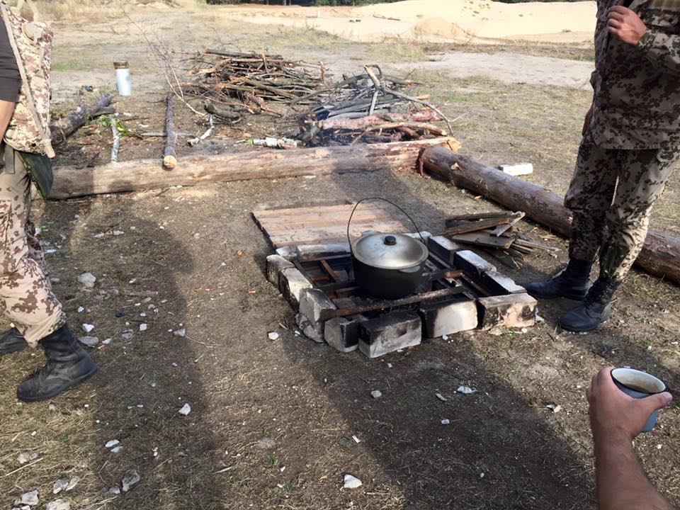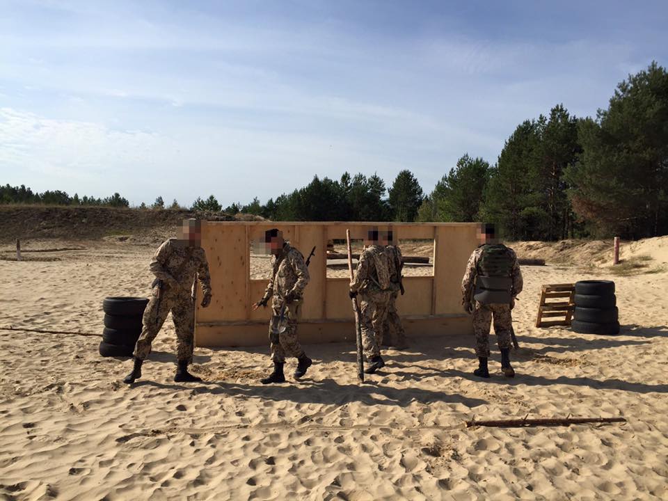 Зранку почали готувати стрільбище. Хлопці робили імітацію стіни будинку, потім її ставили. Робили з ящиків і піску маленькі стінки. А далі — робота зі зброєю на стрільбищі.
