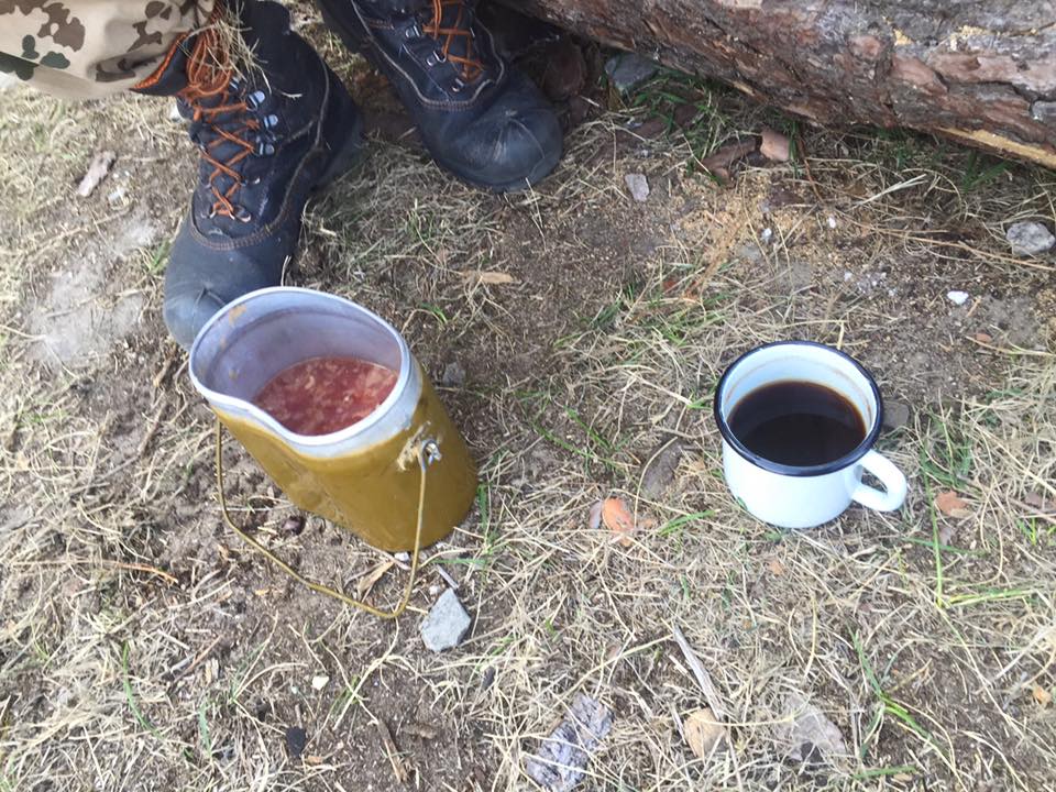 А далі ми пішли по воду. Отак групою. З дозором в голові колони, тиловим дозором. На підході до села хлопці з Каскад-15 показали, як спланувати «операцію з набирання води». Тобто з прикриттями, групою захоплення і т. д. Після планування висунулись. На місці біля криниці тих, хто набирав воду, прикривала група автоматників, з лісу їх прикривали снайпери. Решта групи — в лісі в резерві.