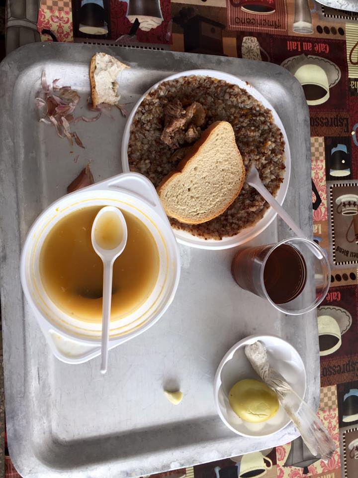 За словами представників їдальні, у них є наказ не подавати сирі продукти. Тільки ті, що пройшли термообробку або консервовані. Нічого сирого. Причина: коли ще давали свіжі овочі, то як тільки у солдата, перепрошую, «срачка», хто винен? — Їдальня! Бо то — недомили, то — пестициди, то — хімікати, то — кухарка нашептала. Тепер свіжих овочів більше не дають. Їдальня — не винна. Срачка (не при столі буде сказано) продовжує вибірковий відстріл солдатських дуп.