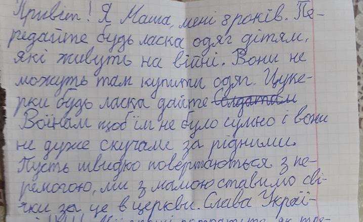 Публикацию с фотографией письма ребенка сделал украинский волонтер Ричард Горда на своей странице в Facebook.