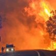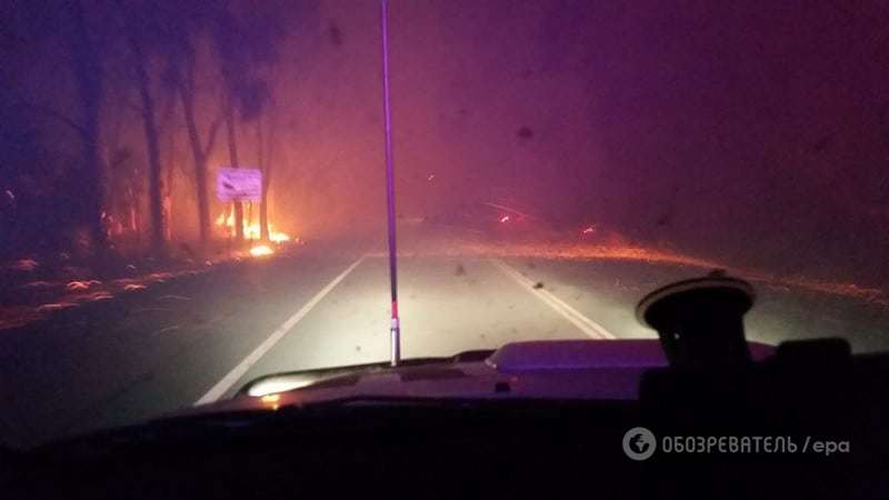 Распространению огня способствуют порывы ветра скоростью до 60 км/час. Местами высота пламени составляет 50 метров.