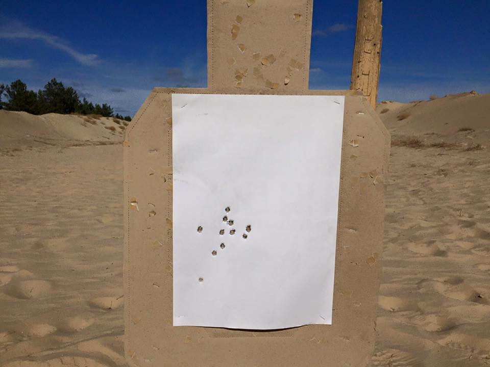 У нас — автоматників — штатний пістолет ПМ. У снайперів — АПС. І мені дали постріляти з АПСу. Стріляв вперше в житті. Відстань 17-20 м. На фото є моя мішень.