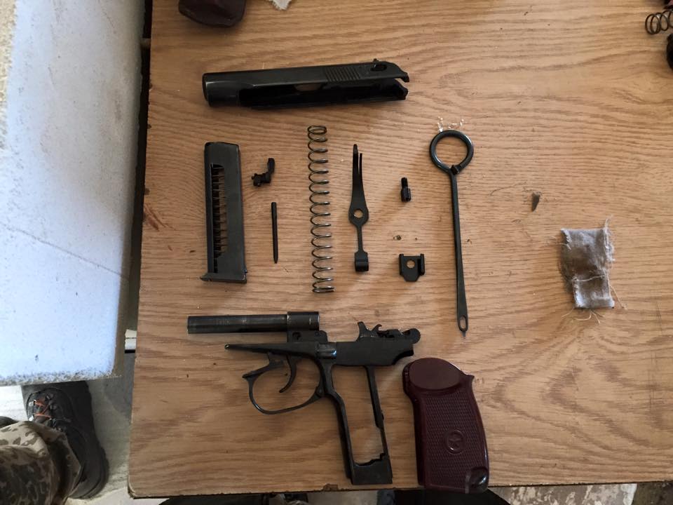 Чистка ПМ. Вперше в житті розібрав його повністю. При збиранні ПМ вирішив, що шматочок шкіри середнього пальця правої руки у мене був зайвим. Тепер у мене там поастир.
