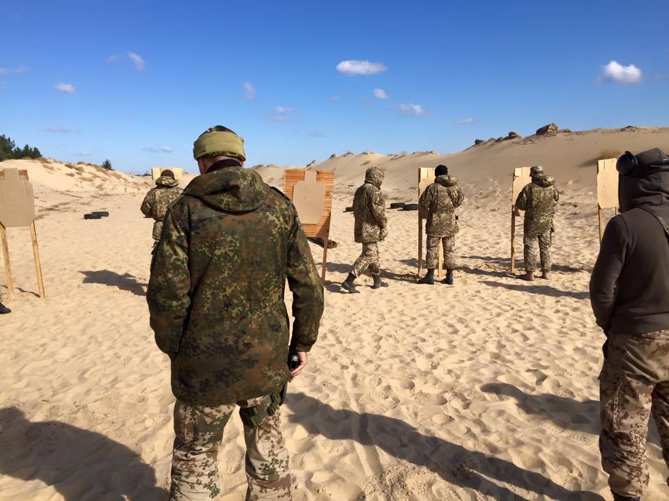 Далі ми стріляли. Різні були вправи. Наприклад стріляли по цілі з АКС, змінювали магазин, знов стріляли по цілі. Потім АКС, коли в автоматі закінчувались набої, його — за спину, витягували ПМ і вистрілювали по цілі два магазина ПМ.