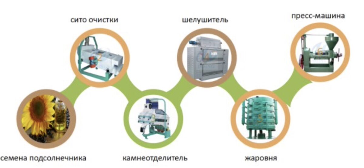 Прежде чем производить прессование или экстракцию, производится очистка семян от минеральных и органических примесей с помощью сепараторов, его кондиционирование по влажности путем высушивания на различных видах сушилок.