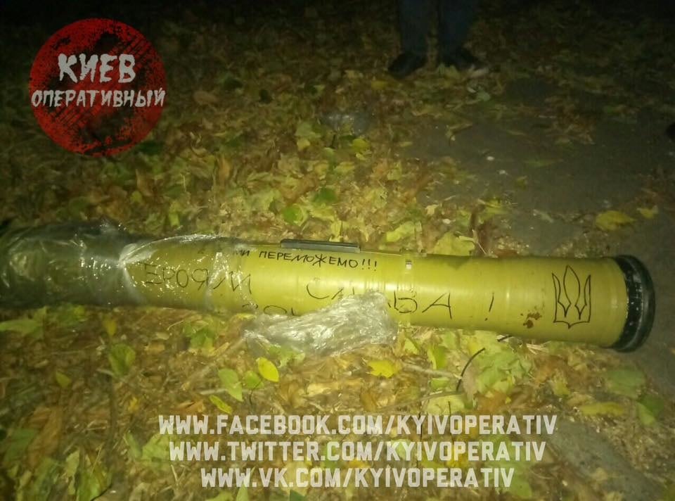«Ми переможемо!». В столичном парке нашли гранатомет с патриотичными надписями