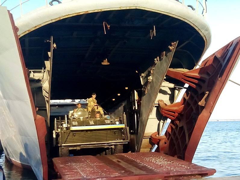 «В ходе занятия, к которому привлекались средний десантный корабль «Кировоград» и десантный катер «Сватово», отрабатывали загрузки бронированной и автомобильной техники на десантный корабль и ее выгрузки, а также выполняли упражнения по вождению бронетранспортеров на воде», — говорится в сообщении.