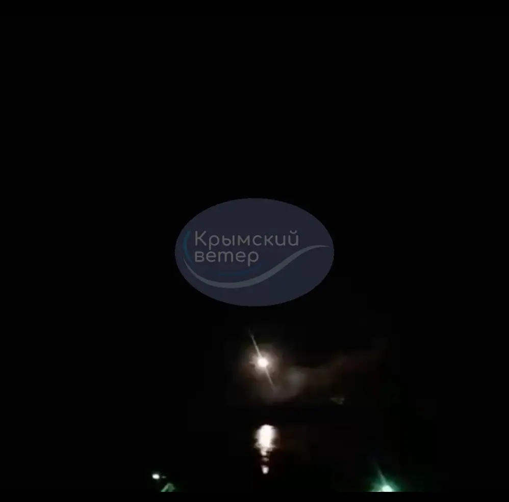 В телеграм-канале «Крымский ветер» были опубликованы, как утверждается, кадры ночной атаки на поселок Новоозерный на западе оккупированного полуострова. По данным канала, там находится российская военная база хранения с большим количеством техники.