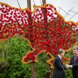 Кроме маков, памятник «Родина-мать» украсили также сине-желтыми ленточками.