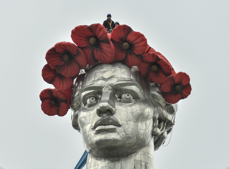 В Киеве на монумент «Родина-мать», который находится в Национальном музее истории Великой Отечественной войны, надели маковый венок, передает РБК-Украина.