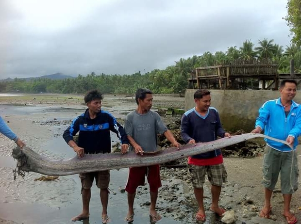 «Морское чудище» удалось выловить рыбаку из провинции Северный Агусан. Отмечается, что на этом же пляже один из отдыхающих голыми руками вытащил из воды гигантскую рыбу. Японские ученые предполагают, что сельдяной король чувствует сейсмическую активность и пытается найти безопасное место.