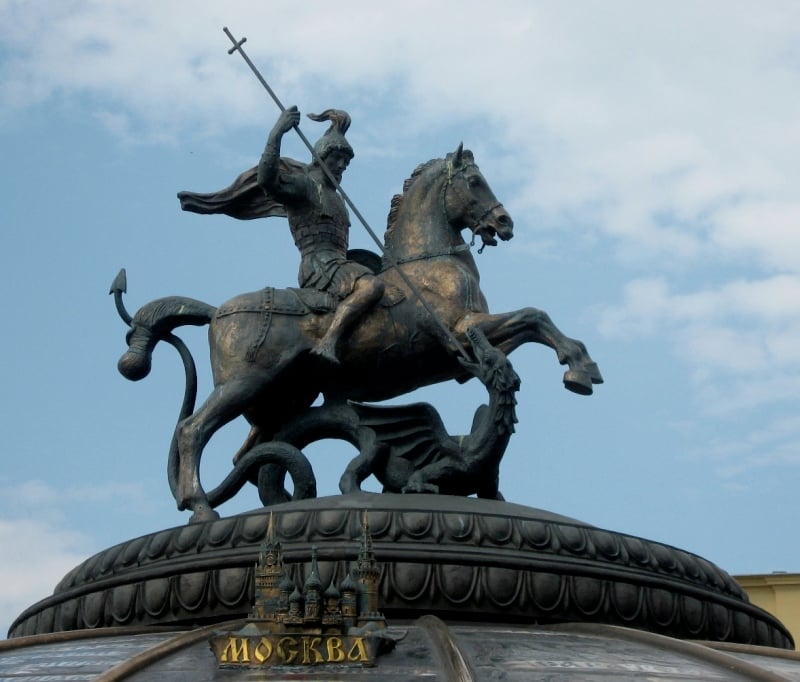 Как известно, Святой великомученик Георгий считается покровителем и защитником воинов. Со времен великого князя Иоанна III изображение св. Георгия Победоносца — всадника, поражающего копьем змея, — стало гербом Москвы и эмблемой Русского государства.