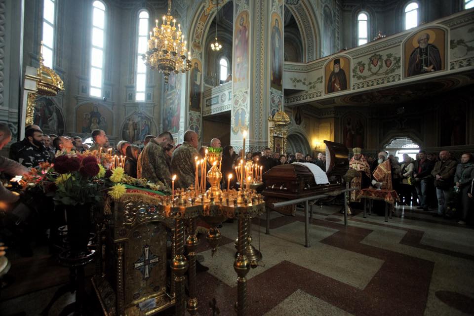Из храма гроб выносили бойцы АТО.