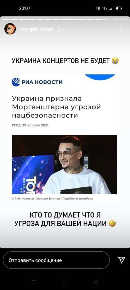 Российский рэпер Моргенштерн (Алишер Валеев) отреагировал на то, что Минкульт Украины внес его в список людей, угрожающих нацбезопасности нашей страны. Своими комментариями он поделился в сторис в Instagram.