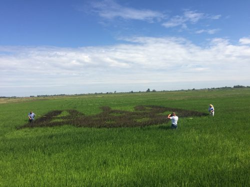 В селе Антоновка Херсонской области аграрии среди поля высеяли огромный трезубец, который стал победителем в номинации «Самый большой герб Украины, созданный и посеянный рисом с черными листьями», сообщает пресс-служба Херсонской ОГА.